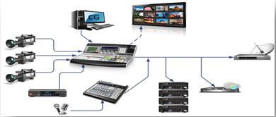 它單獨一臺設備就包含了傳統演播室中的切換臺、調音臺、錄像機、放像機、字幕機等設備。從而輕松實現信號切換、音頻調整、多通道錄制,素材播放、字幕播出、流媒體網絡直播、甚至虛擬演播等功能。