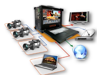 傳統演播室,一個專業的演播室系統包括如:切換臺、調音臺、字幕機、錄像機、多畫面等,同時周邊還有通話等配套設備。整個系統所涉及到的設備非常多,系統連接也很復雜,必須要有一個專業的工作團隊,專人專職的負責各項操作。對于一般的用戶來說,制作一場室內錄播節目往往費時費力。那么有什么方法既能兼顧室內和移動的演播任務,同時又省時省力省投入呢?