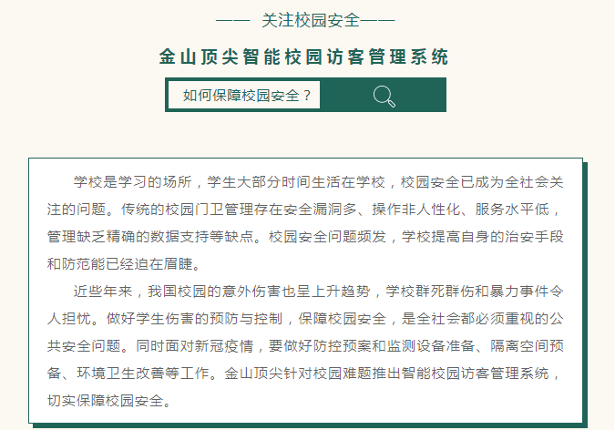 金山頂尖智能校園訪客管理系統,切實保障校園安全  2022-03-30